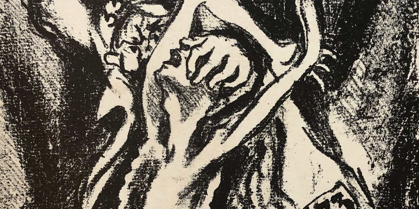 Cette lithographie fait partie de l’album Vaincre, publié clandestinement par le Front national des arts. Œuvre de Boris Taslitzky, elle dépeint avec une intensité tragique une scène de la vie sous l’Occupation.